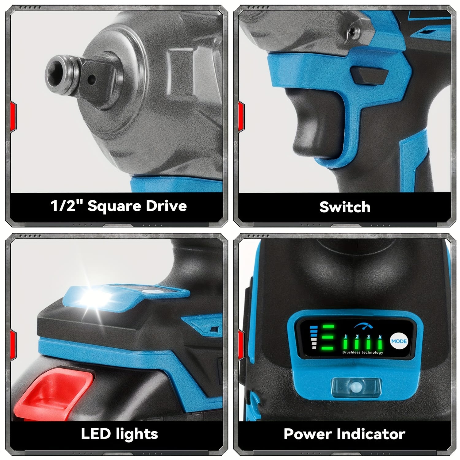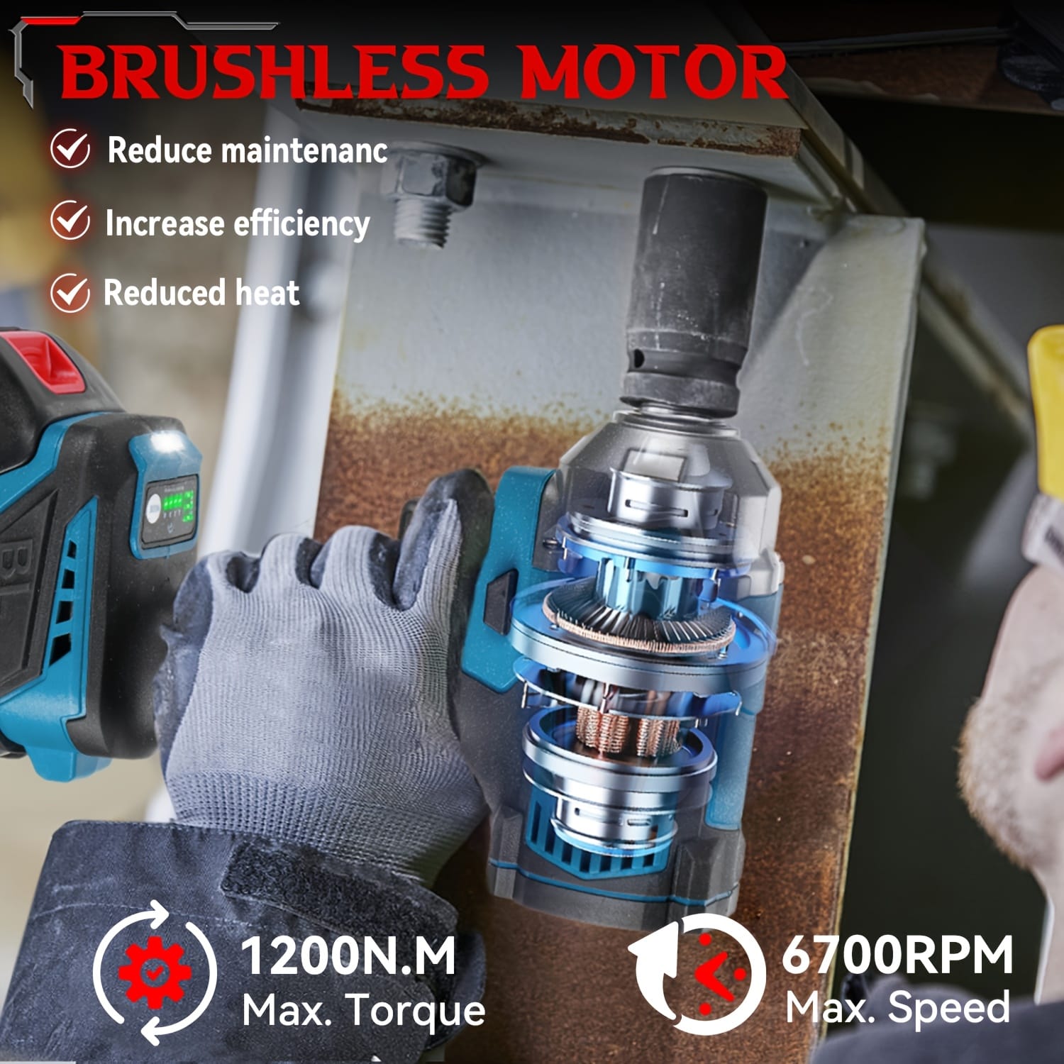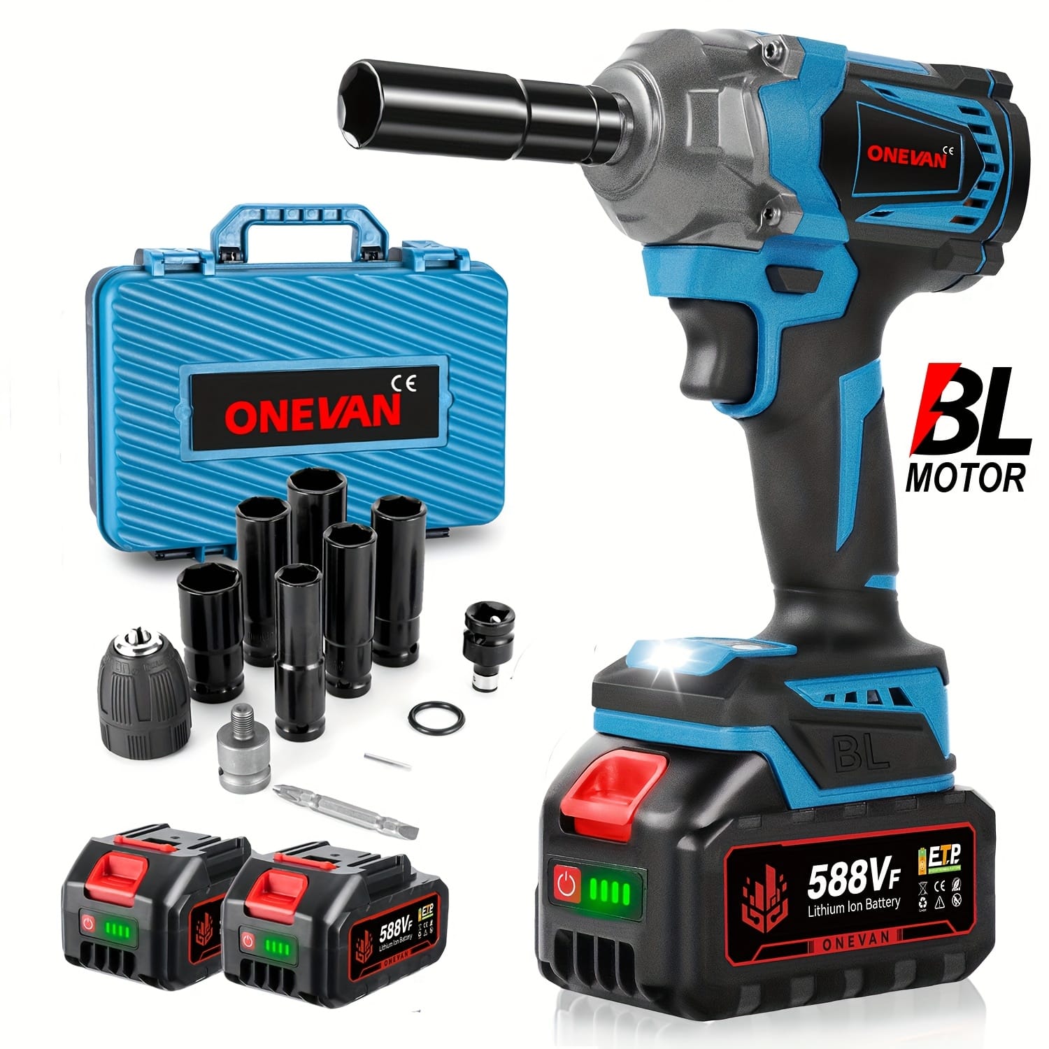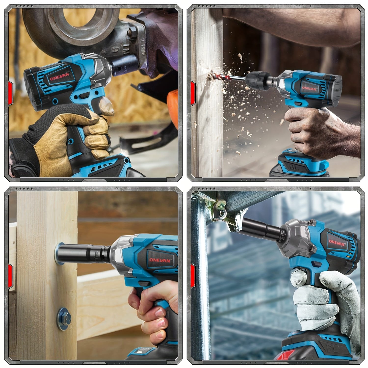 The ONEVAN 1000Nm Brushless Cordless Impact Wrench is a high-torque powerhouse designed for automotive repairs and heavy-duty DIY projects. Featuring a 1/2 inch anvil and a powerful brushless motor, it delivers up to 730 Ft-lbs of torque to handle the toughest bolts