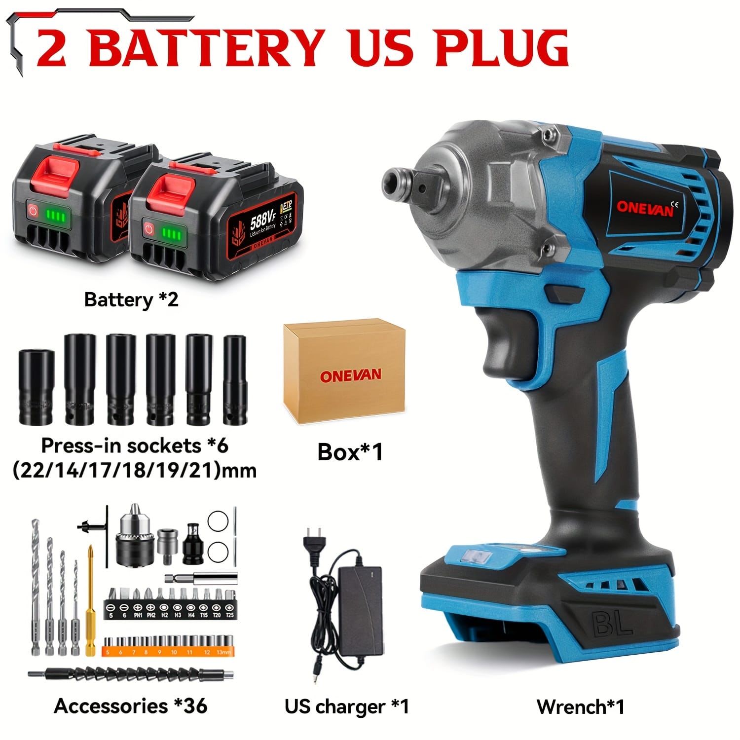 ONEVAN Cordless Impact Wrench, Brushless Electric Impact Driver, 730 Ft-lbs