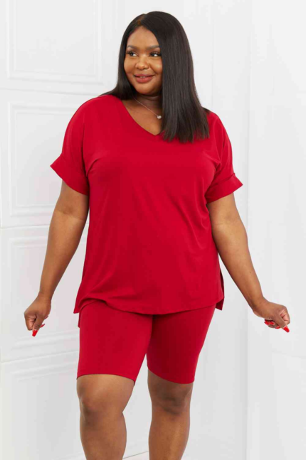 Zenana Full Size Quiet Moments Brushed Lounge Set in Burgundy